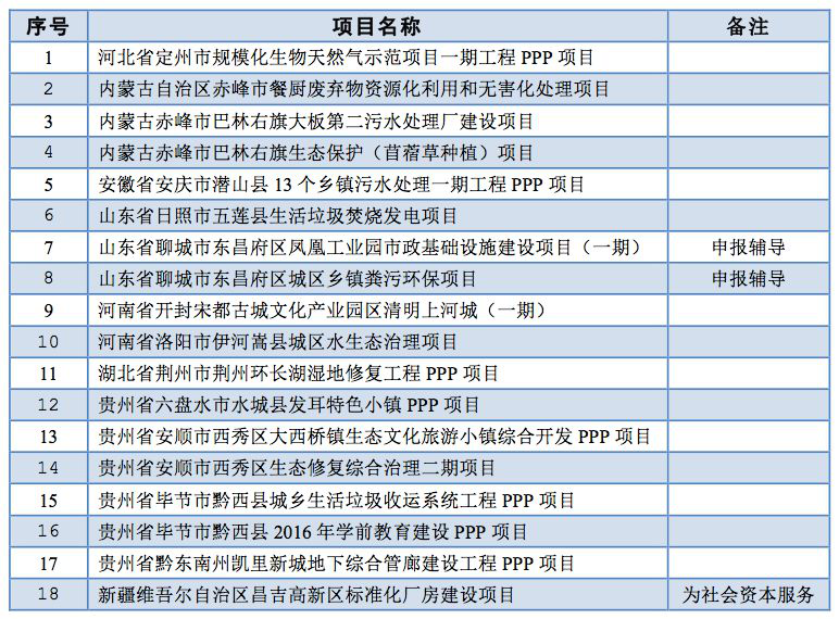 中建政研在提供規(guī)范“兩評(píng)一案”編制、政府采購服務(wù)、合同談判的基礎(chǔ)之上,積極拓展項(xiàng)目執(zhí)行階段咨詢服務(wù),現(xiàn)已籌劃開展績效評(píng)價(jià)、SPV財(cái)務(wù)籌劃等多項(xiàng)執(zhí)行階段咨詢服務(wù),為PPP項(xiàng)目執(zhí)行過程中持續(xù)規(guī)范化運(yùn)作提供技術(shù)支持。這18個(gè)項(xiàng)目為: