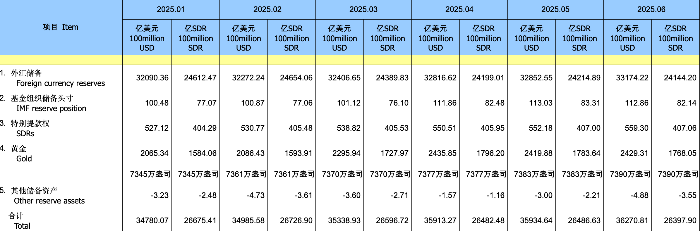 7月7日,中國人民銀行公布數(shù)據(jù)顯示,截至6月末,我國黃金儲(chǔ)備規(guī)模7390萬盎司,較5月末增加7萬盎司,為連續(xù)第8個(gè)月增持黃金。