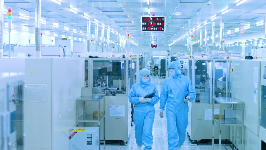 《證券日報》記者參觀了公司一流的光刻車間,看到潔凈的車間內(nèi)整齊地擺放著光刻工藝設(shè)備,少數(shù)穿著白色防護服的車間工作人員,正在認真細致地檢查著微小的芯片。