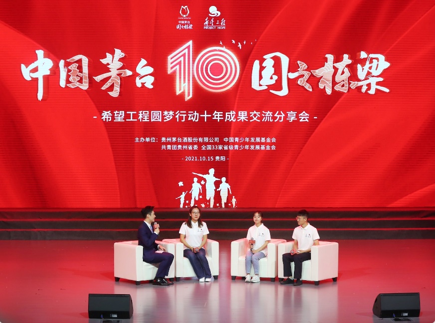 千里之外的北京,成果交流分享會的分會場,數(shù)位茅臺圓夢學子也與主持人暢談著理想與奮斗,勵志要成為國家的棟梁之材。