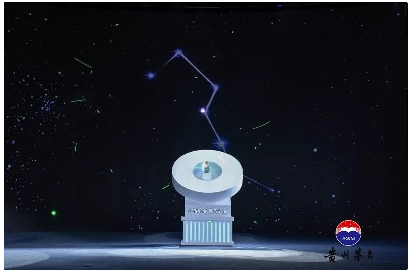 在表現(xiàn)形式上,“光影茅臺(tái)”高度契合茅臺(tái)“順天應(yīng)時(shí)”的傳統(tǒng)工藝,以《時(shí)間的醬造者》為故事線,以時(shí)間為線索,以聲光電為媒介,“講述”屬于茅臺(tái)的自然生態(tài)與城鎮(zhèn)人文故事。“鼓聲陣陣,重陽(yáng)祭酒,露白秋高,且將高粱下沙去”“紅楓落地,白霜漸起,水蒸霧溢,正是酒料上甑時(shí)”“殘荷掛露,白樺半疏,酵酒釀熟,一捧新醅入窖濡”……用聲光影演繹茅臺(tái)釀造文化與傳統(tǒng)二十四節(jié)氣文化融合之美。