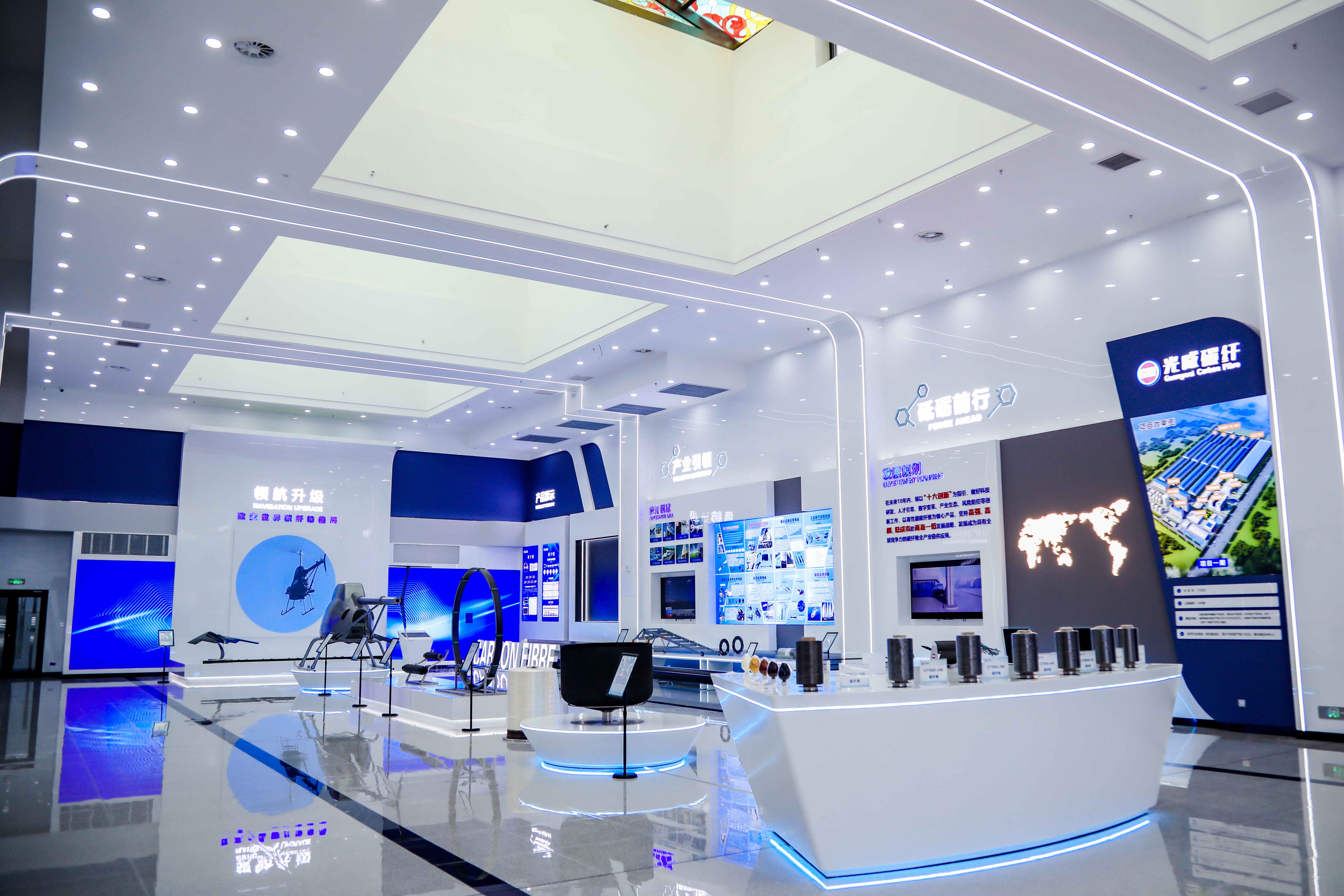 內蒙古光威項目展廳內展示了各種規(guī)格型號的碳纖維產品 王僖/攝