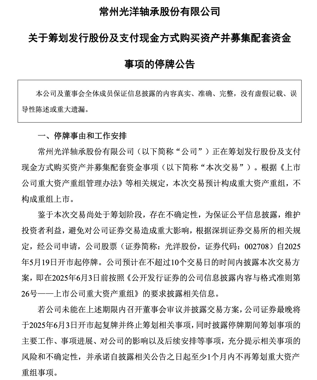 5月18日晚間,常州光洋軸承股份有限公司(以下簡(jiǎn)稱“光洋股份”,股票代碼:002708)發(fā)布公告稱,公司正在籌劃發(fā)行股份及支付現(xiàn)金方式購(gòu)買寧波銀球科技股份有限公司(以下簡(jiǎn)稱“銀球科技”)100%股權(quán)并募集配套資金事項(xiàng)。公司股票自2025年5月19日開市起停牌。公司預(yù)計(jì)在不超過(guò)10個(gè)交易日的時(shí)間內(nèi)披露本次交易方案。