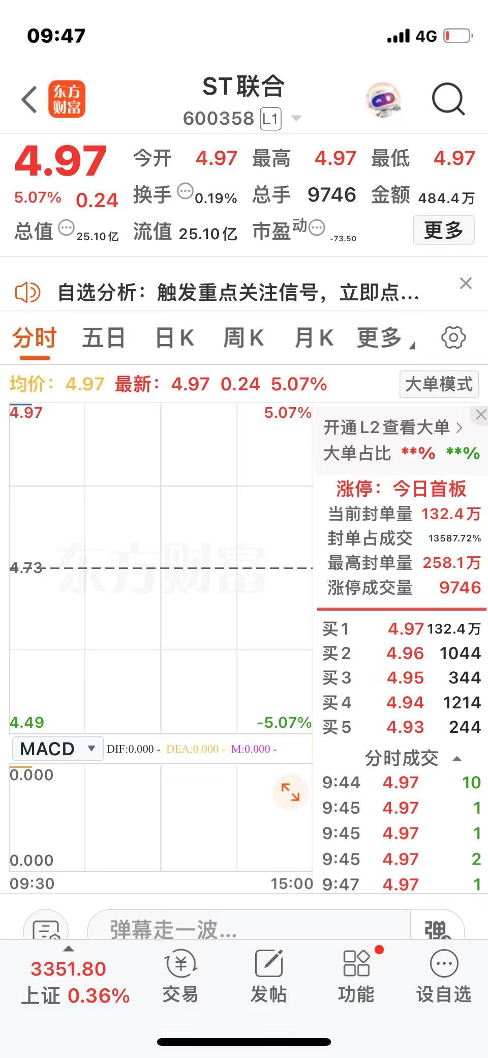 若本次交易完成,將大幅增強(qiáng)上市公司的核心競爭力、增厚公司利潤,同時將助力公司進(jìn)一步做大做強(qiáng),實(shí)現(xiàn)轉(zhuǎn)型升級式高質(zhì)量發(fā)展。公司股票自2025年5月15日開市起開始停牌,于5月29日開市起復(fù)牌。今日開盤公司股價一字漲停,報4.97元/股。