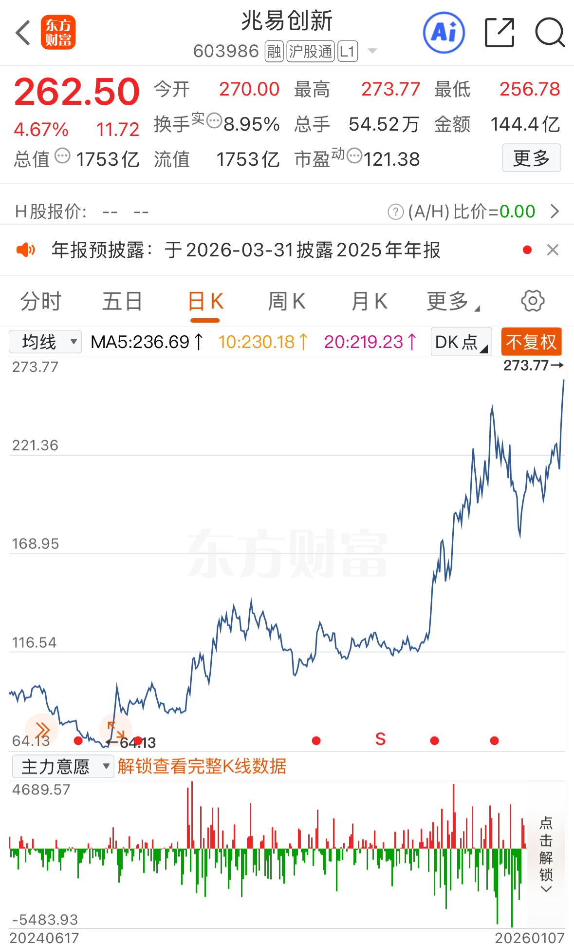 此外,千億元市值龍頭兆易創(chuàng)新早盤一度漲近9%,股價續(xù)創(chuàng)新高;截至收盤,盡管兆易創(chuàng)新股價漲幅回落至4.67%,報收262.5元/股,股價仍突破前高。