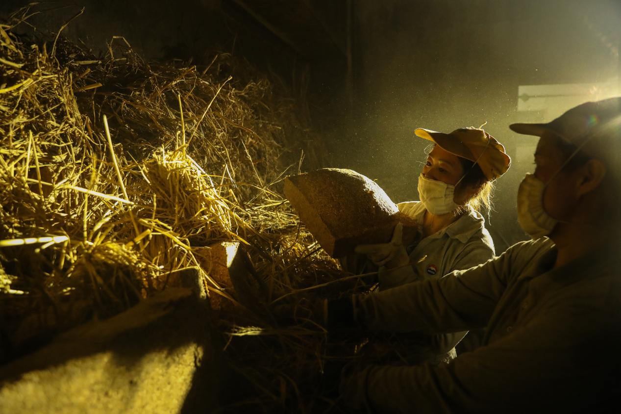任金素則在制曲領(lǐng)域深耕超36年,如今已是首席制曲釀造師。她在長期實踐中練就了一套實用的判斷方法:看顏色便能掌握拌料比例,憑手感就能精準(zhǔn)控制曲醅厚度,摸一摸曲塊就能大致判斷溫度,誤差不超過1℃。這些看似尋常的技能,背后是日復(fù)一日的積累與打磨。