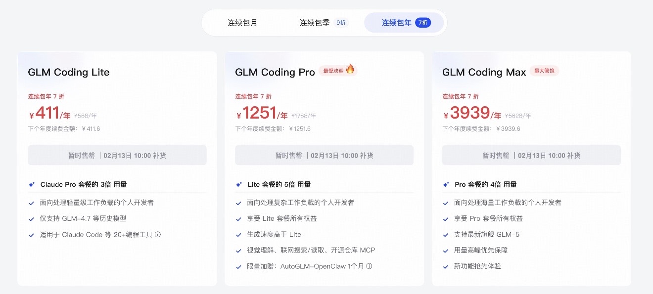 本報(bào)訊 (記者梁傲男)2月12日,記者獲悉,智譜官方GLM Coding Plan上線即售罄。一個(gè)國產(chǎn)AI編程模型的付費(fèi)套餐被搶空,這在行業(yè)歷史上較為罕見。