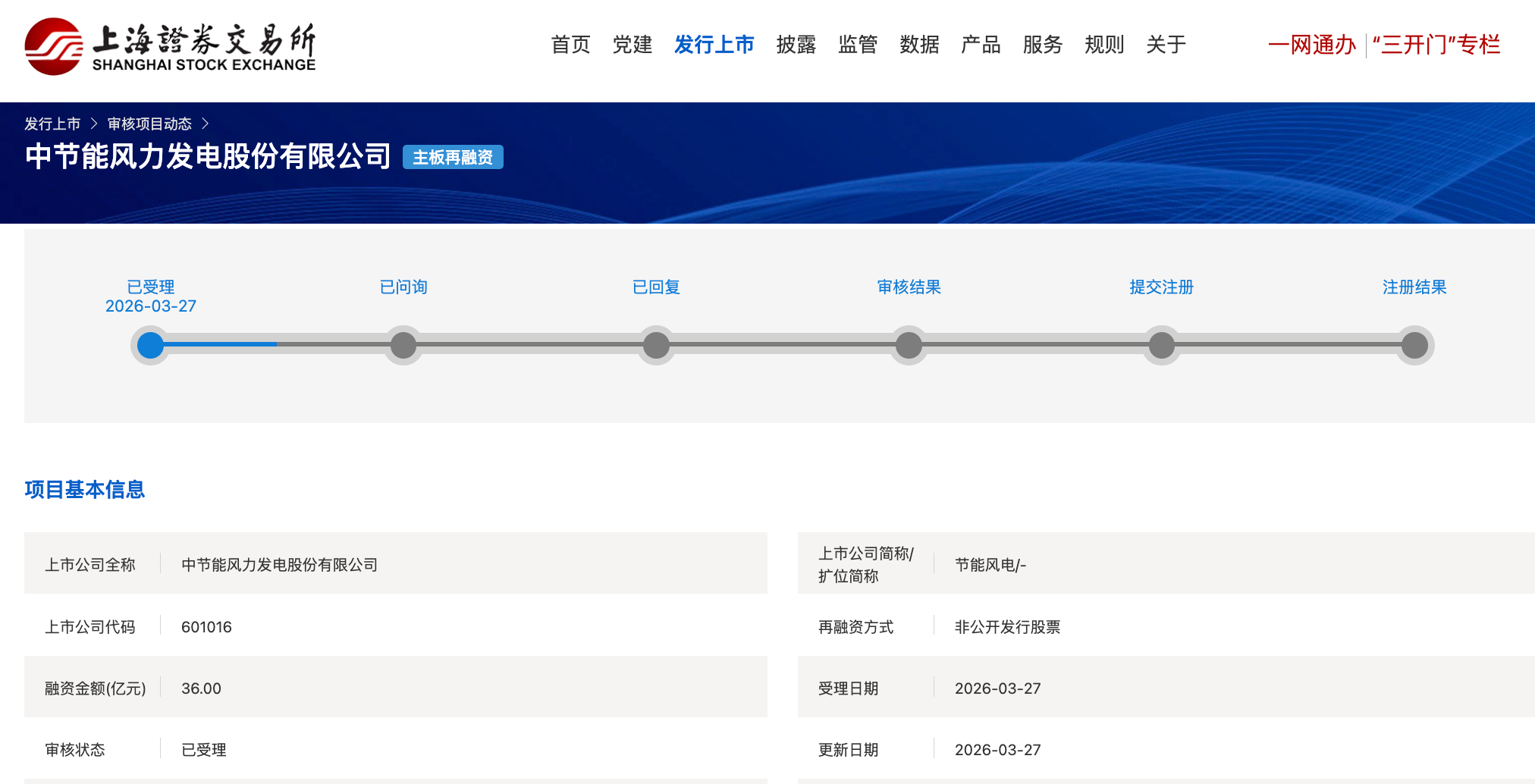 本報訊 (記者毛藝融)3月27日,中節(jié)能風(fēng)力發(fā)電股份有限公司(以下簡稱“節(jié)能風(fēng)電”)定向增發(fā)申請獲上交所受理,募集資金將全部用于察右前旗、阿克塞、甘州、懷安等7個已核準(zhǔn)的優(yōu)質(zhì)風(fēng)力發(fā)電項目建設(shè)。