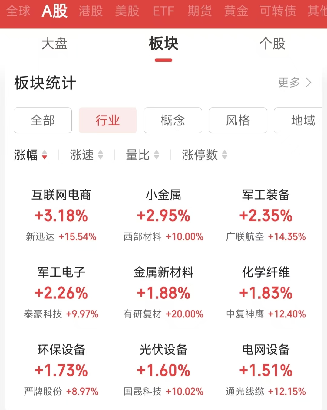 行業(yè)熱點方面,iFinD數(shù)據(jù)顯示,截至4月20日上午收盤,在同花順A股二級行業(yè)中,互聯(lián)網(wǎng)電商行業(yè)漲幅達(dá)到3.18%,位居榜首。小金屬(漲幅2.95%)、軍工裝備(漲幅2.35%)、軍工電子(漲幅2.26%)等行業(yè)緊隨其后。此外,金屬新材料、化學(xué)纖維、環(huán)保設(shè)備等行業(yè)也表現(xiàn)活躍,漲幅均超過1%。