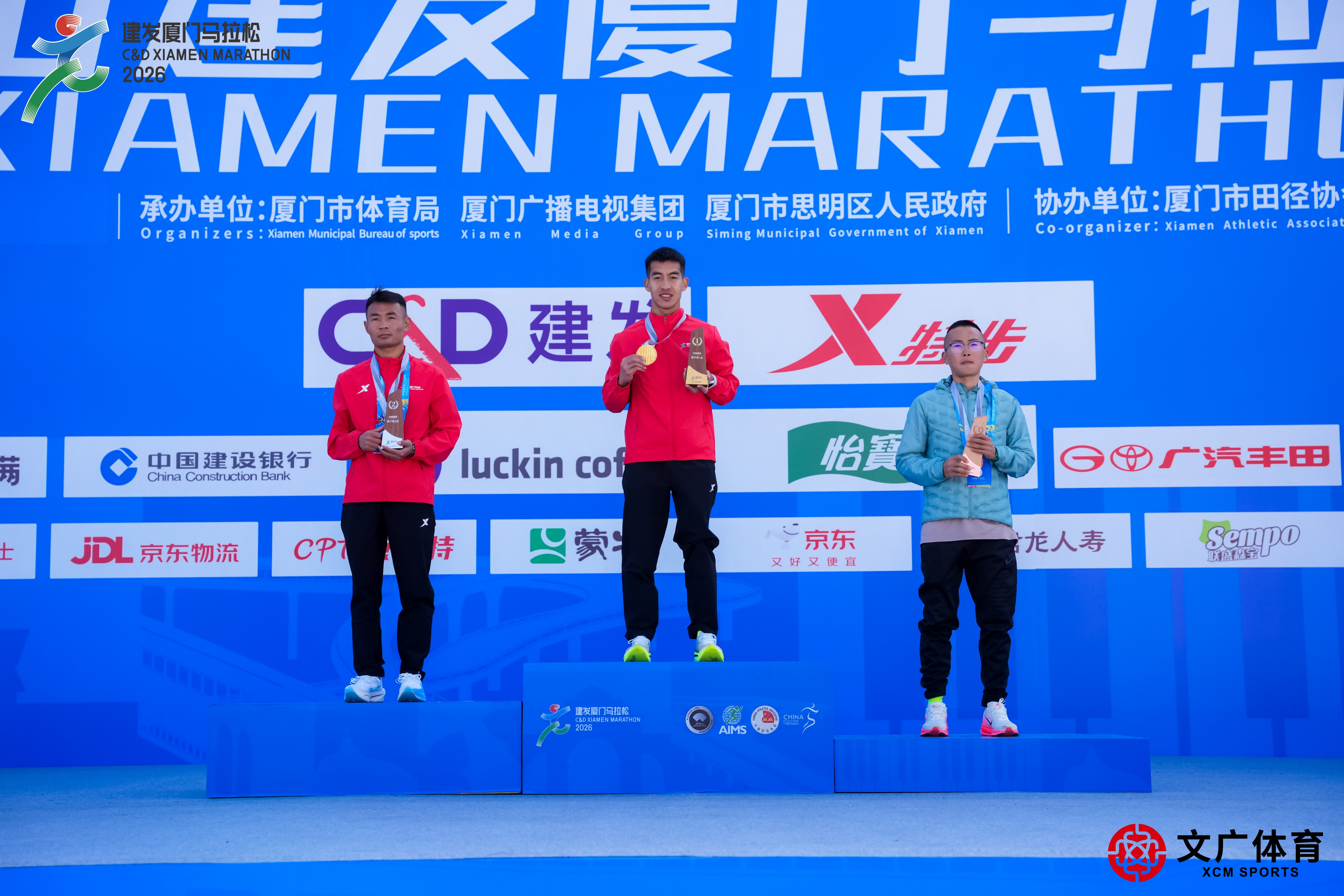 2026廈門馬拉松國(guó)內(nèi)男子冠軍前三領(lǐng)獎(jiǎng)