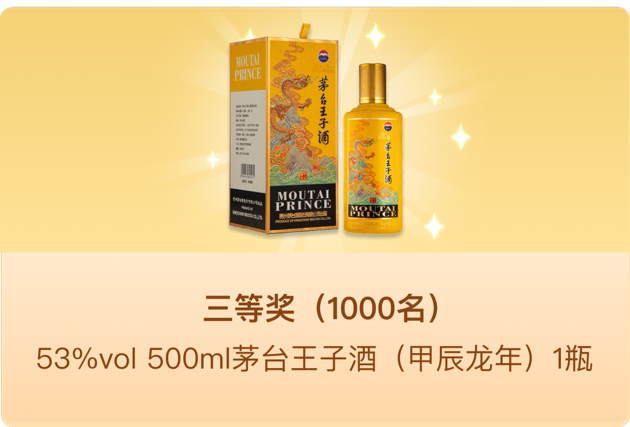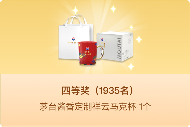 活動(dòng)期間,親們?cè)趇茅臺(tái)App購買上述四款活動(dòng)產(chǎn)品,累計(jì)實(shí)付金額滿500元及以上,并在5月7日前確認(rèn)收貨,可參與抽獎(jiǎng)活動(dòng),有機(jī)會(huì)抽取以下獎(jiǎng)品: