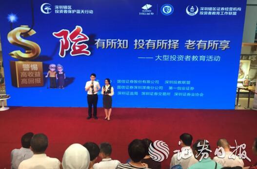 國信證券經(jīng)紀(jì)事業(yè)部副總裁徐敬耀表示,作為植根于深圳特區(qū)的全國性大型綜合類證券公司,國信證券一直積極參與公益事業(yè),包括精準(zhǔn)扶貧、“守護(hù)資本市場藍(lán)天”投資者教育公益行動等,在為投資者提供專業(yè)的全方位金融服務(wù)的同時,也積極承擔(dān)投資者教育和權(quán)益保護(hù)的社會責(zé)任。希望通過此次活動,使廣大投資者在投資時“擦亮雙眼”,減少不必要的損失,也希望投資者能夠選擇正規(guī)合法的金融機(jī)構(gòu),實(shí)現(xiàn)自身對投資的需求。在市場環(huán)境復(fù)雜,金融產(chǎn)品和投資平臺日益繁多的情況下,投資者教育與保護(hù)公益事業(yè)是正規(guī)證券經(jīng)營機(jī)構(gòu)義不容辭的責(zé)任。