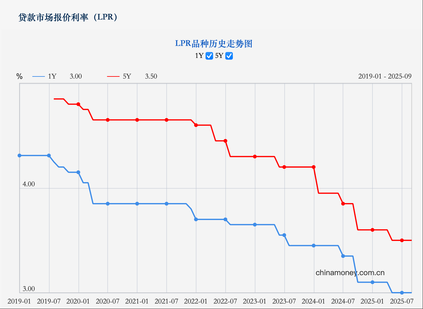 9月22日,中國人民銀行授權(quán)全國銀行間同業(yè)拆借中心公布,2025年9月22日貸款市場報(bào)價(jià)利率(LPR)為:1年期LPR為3.0%,5年期以上LPR為3.5%。兩個(gè)期限品種LPR較上月均維持不變。