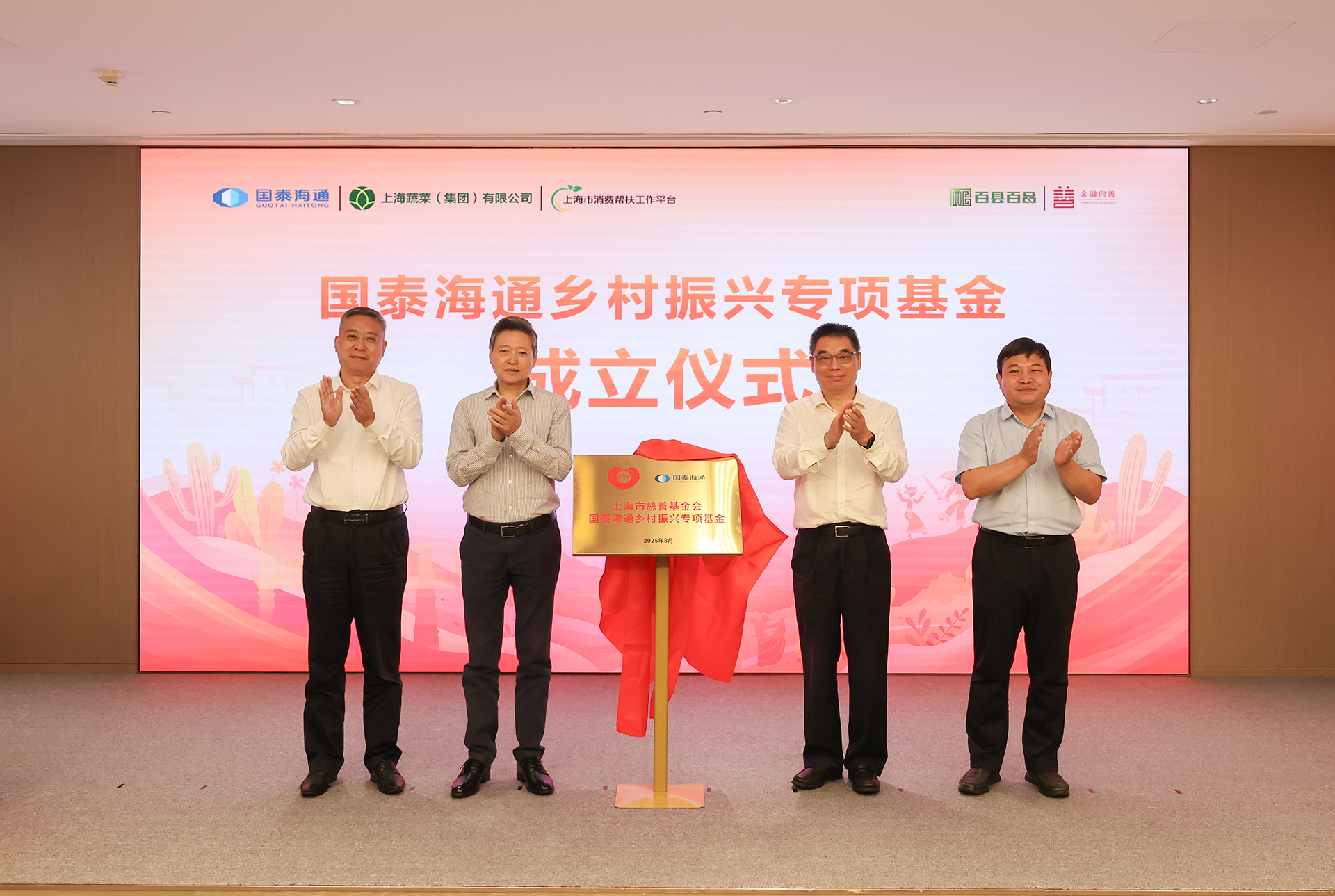 為了進(jìn)一步做好產(chǎn)業(yè)幫扶,公司在上海市慈善基金會(huì)設(shè)立“國(guó)泰海通鄉(xiāng)村振興專項(xiàng)基金”,首期規(guī)模1000萬元。上海市慈善基金會(huì)副理事長(zhǎng)丁斐平和吳紅偉共同為“國(guó)泰海通鄉(xiāng)村振興專項(xiàng)基金”揭牌,為結(jié)對(duì)縣發(fā)展有潛力的特色產(chǎn)業(yè)提供助力、注入動(dòng)能。