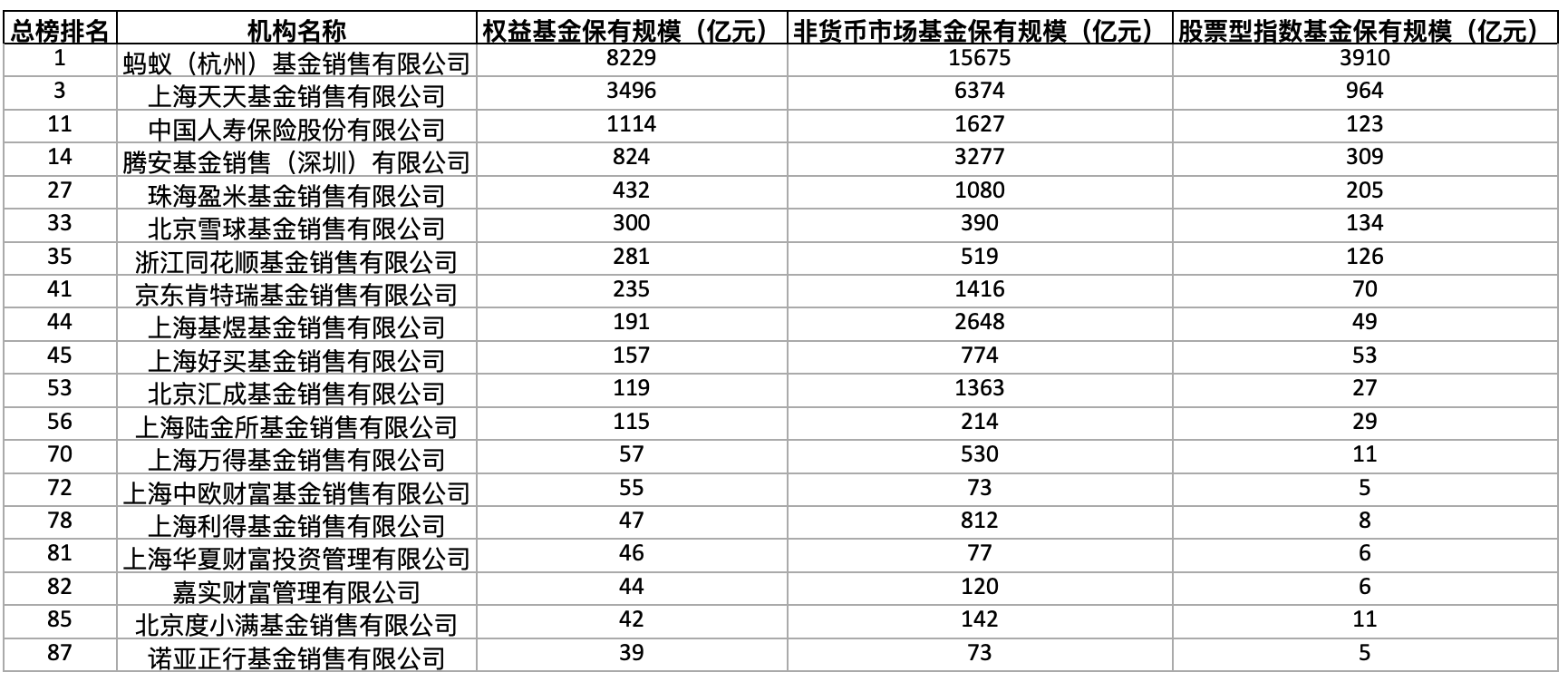 獨立基金銷售機構(gòu)和保險公司代銷基金排名
