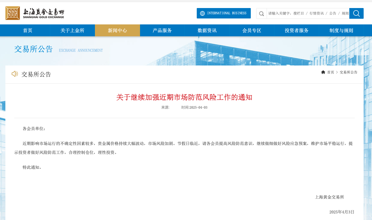 同日,上海黃金交易所(簡(jiǎn)稱“上金所”)發(fā)布《關(guān)于繼續(xù)加強(qiáng)近期市場(chǎng)防范風(fēng)險(xiǎn)工作的通知》(以下簡(jiǎn)稱《通知》)?!锻ㄖ贩Q,近期影響市場(chǎng)運(yùn)行的不確定性因素較多,貴金屬價(jià)格持續(xù)大幅波動(dòng),市場(chǎng)風(fēng)險(xiǎn)加劇。