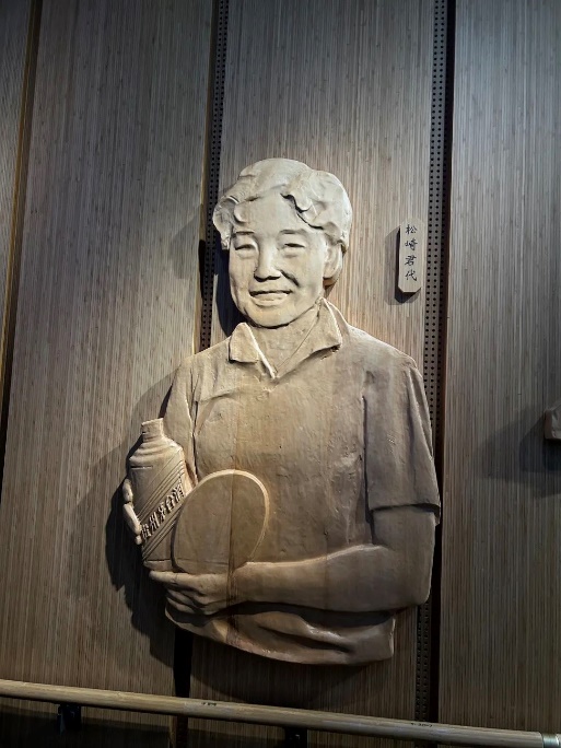 手持茅臺(tái)酒瓶的日本前乒乓球國(guó)手松崎君代浮雕
