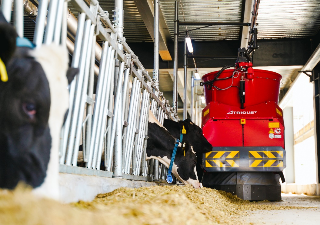 奶牛想吃就吃,牧場根據(jù)每頭牛的泌乳階段、健康數(shù)據(jù)和采食習慣,精確計算日糧所需的營養(yǎng)元素,例如,泌乳高峰期奶牛每天可自由采食玉米青貯、苜蓿草等定制化營養(yǎng)套餐;想喝就喝,水槽每天清洗,讓奶牛喝上“冬暖夏涼(冬季:14-17°C;夏季:常溫水)”的水;想睡就睡,每頭奶牛都有自己的專屬單間和舒適的臥床,每天睡足13個小時左右。牧場通過奶牛的電子項圈監(jiān)測奶牛反芻頻率、步數(shù)等數(shù)據(jù),AI系統(tǒng)可提前48小時預警乳腺炎等疾病。
