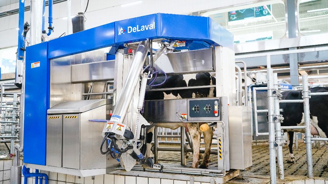 除了溫控,牧場配備的空氣質量監(jiān)測設備每15分鐘自動換氣,牧場工作人員每天三次整理臥床,除糞機器人24小時循環(huán)清掃,為奶牛提供舒適的休息場所。