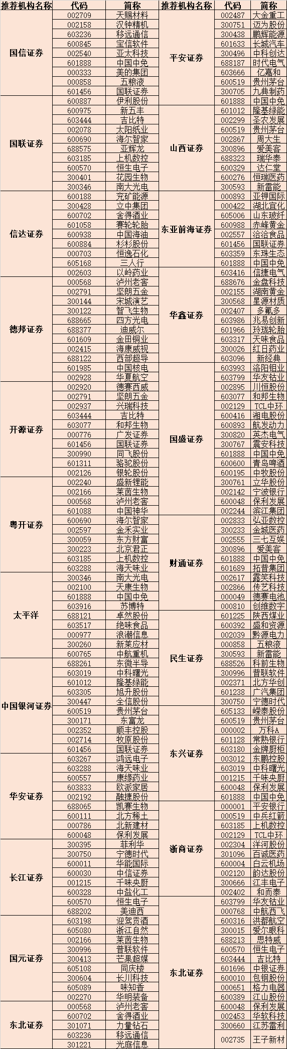 表:7月份券商推薦金股一覽
