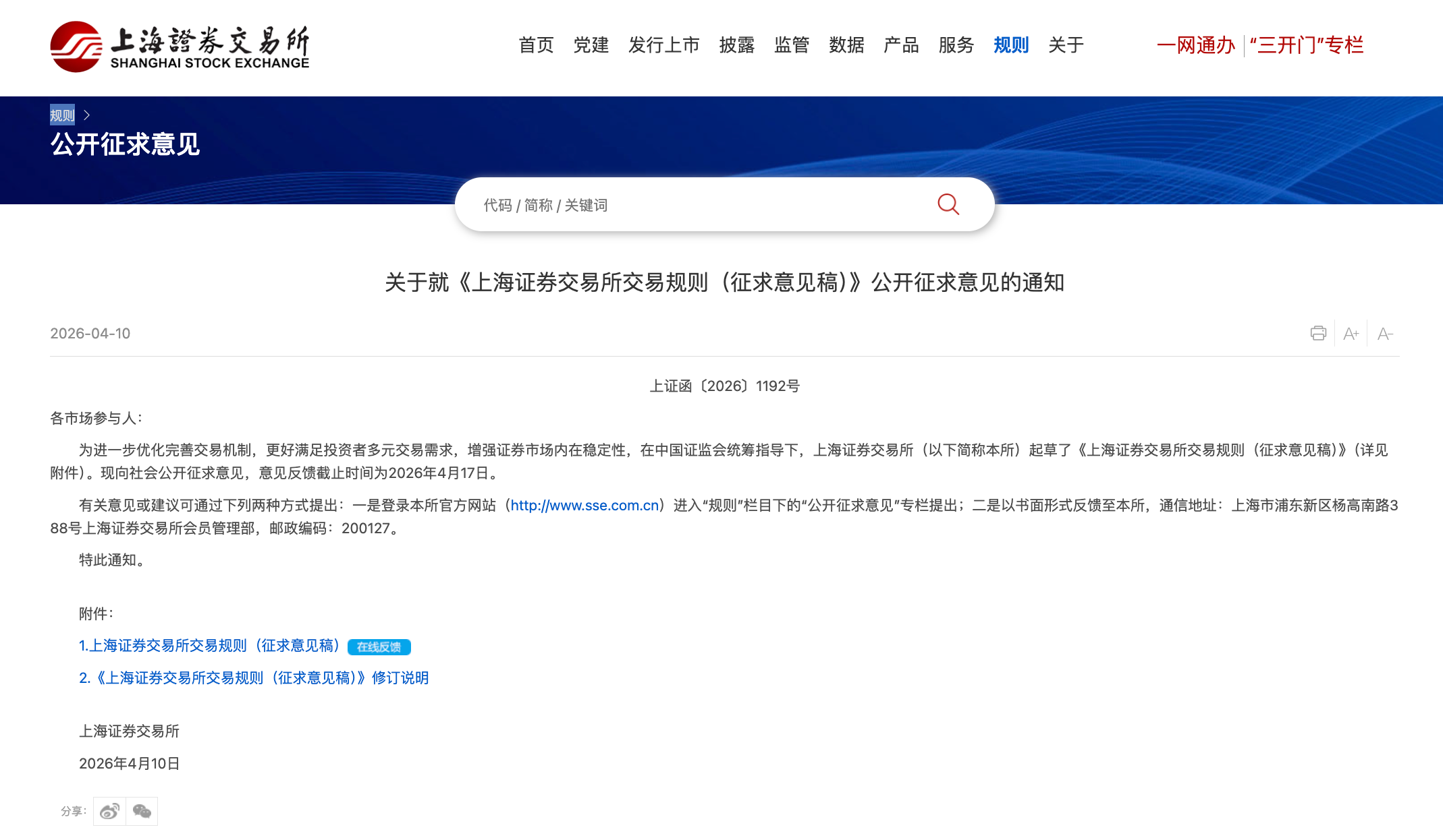 4月10日,上海證券交易所(以下簡稱“上交所”)發(fā)布關(guān)于就《上海證券交易所交易規(guī)則(征求意見稿)》(以下簡稱《交易規(guī)則》)公開征求意見的通知。