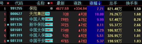 保險(xiǎn)板塊漲近8%