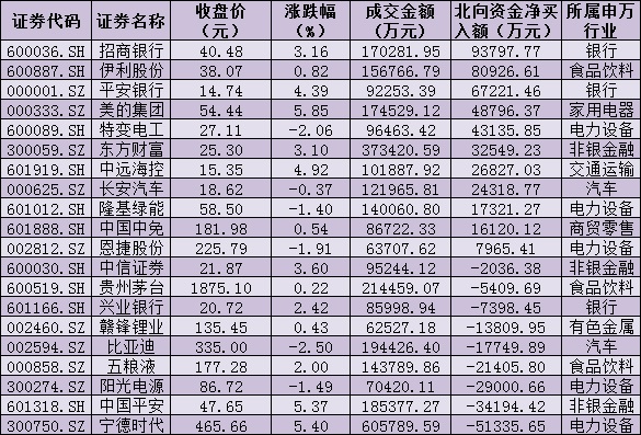 值得關(guān)注的是,北向資金今日呈凈流入態(tài)勢(shì),全天凈買(mǎi)入金額達(dá)133.59億元。其中,招商銀行、伊利股份、平安銀行等3只個(gè)股,凈買(mǎi)入金額均超6億元,分別為9.38億元、8.09億元和6.72億元。