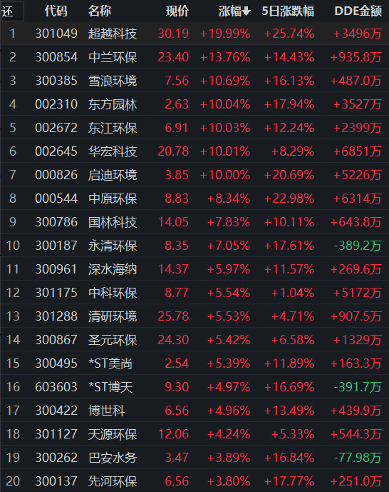 從漲幅居首的環(huán)保行業(yè)看,截至7月22日11:30,行業(yè)交易中的131只個(gè)股,有109只上漲,其中,有6只個(gè)股漲停,有15只個(gè)股漲幅超5%。從資金流向看,環(huán)保行業(yè)今天上午大單資金凈流入額達(dá)3.70億元,居各行業(yè)第2位。