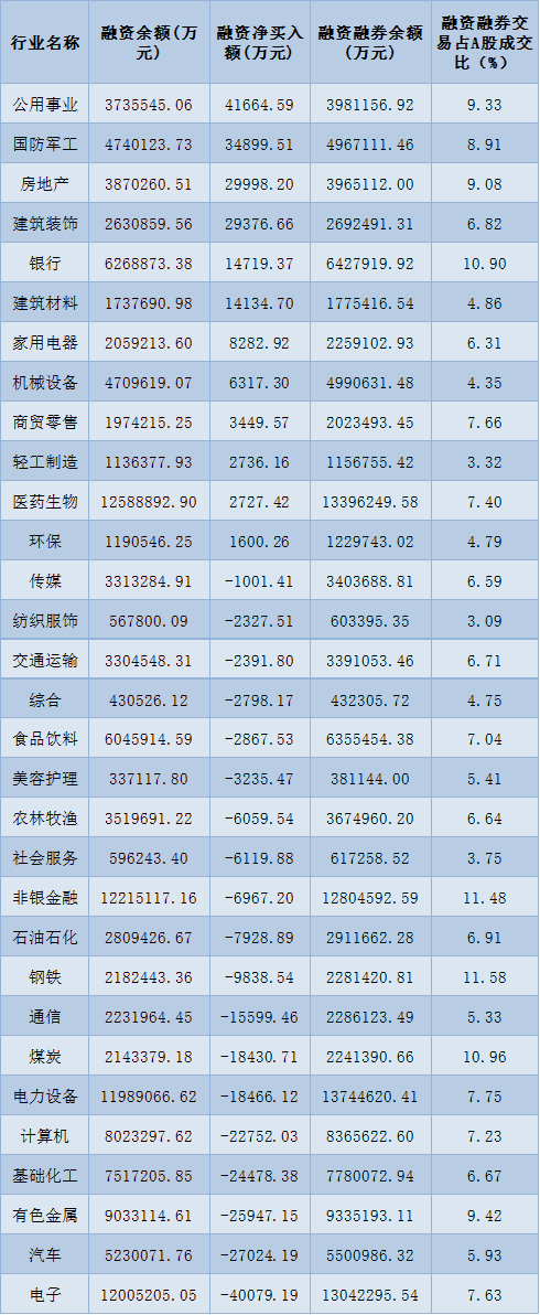 表:7月21日申萬一級行業(yè)兩融交易情況: