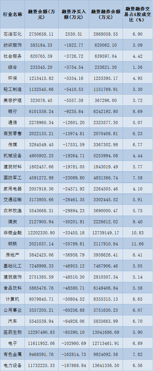 表:8月2日申萬一級行業(yè)兩融交易情況: