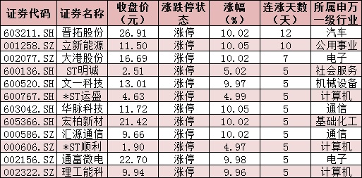 表:今日漲停且連漲5日以上的個股情況: