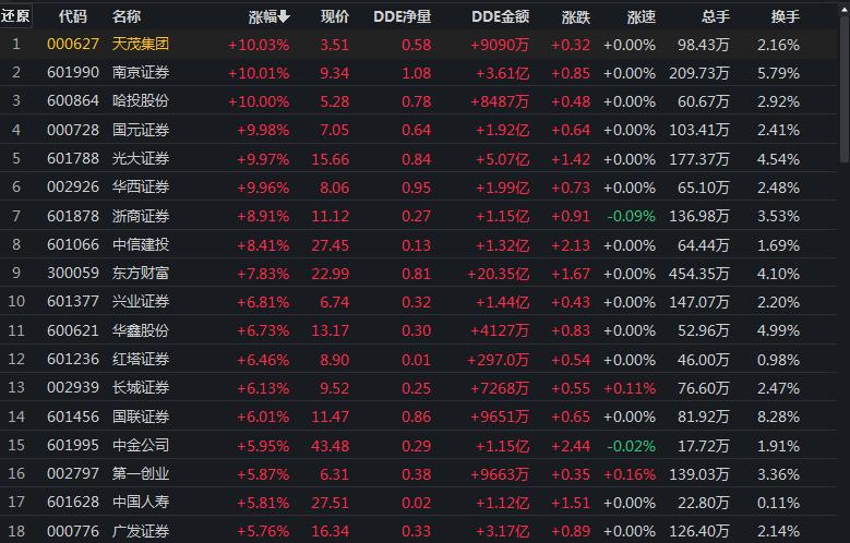 8月11日,非銀金融行業(yè)漲幅居首,達(dá)4.53%。其中,弘業(yè)期貨、南京證券、國元證券、華西證券、哈投股份、光大證券、ST海投、天茂集團(tuán)等8只個股集體漲停。