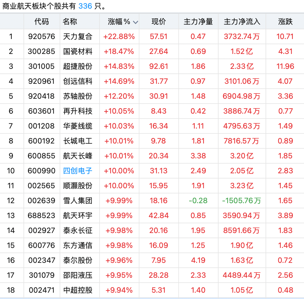 12月12日,商業(yè)航天板塊走強(qiáng),10余只個(gè)股集體漲停、多股連板,市場(chǎng)熱度持續(xù)升溫。