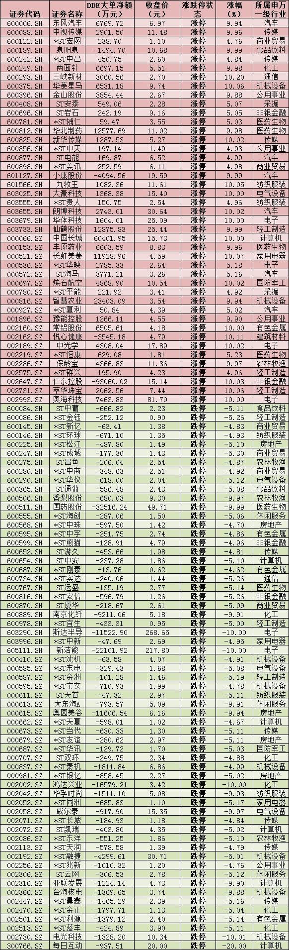 一、周二(12月15日)DDE大單資金凈買入TOP20