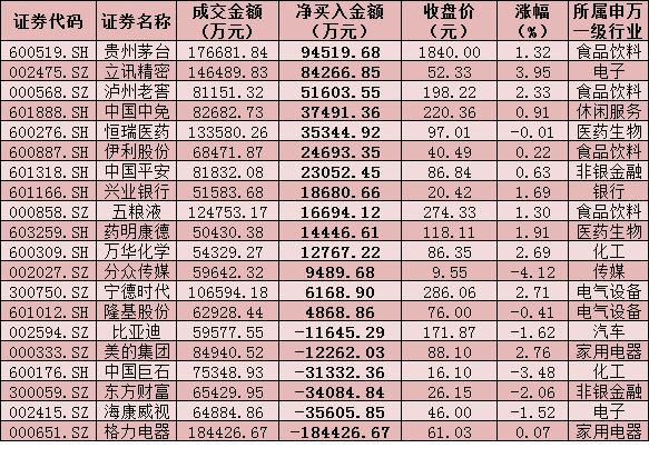 四、周三(12月16日)滬、深股通前十大成交活躍股交易情況