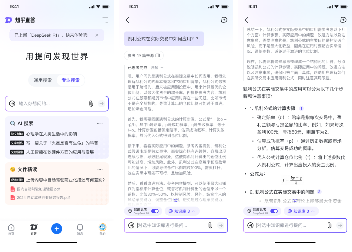 2月11日,知乎宣布旗下AI搜索產(chǎn)品知乎直答接入“滿血版”DeepSeek-R1,在社區(qū)優(yōu)質(zhì)語(yǔ)料、專業(yè)知識(shí)庫(kù)基礎(chǔ)之上,全面升級(jí)推理能力,帶來(lái)全新AI搜索體驗(yàn)。此外,知乎直答還同步上線了“知識(shí)庫(kù)”功能,助力知識(shí)工作者效率提升。