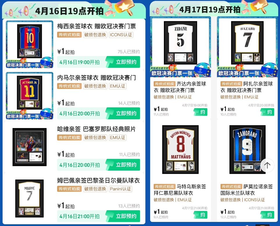 即日起登陸京東APP搜索“京東拍賣”,提前鎖定心儀藏品并預(yù)約4月16日晚七點(diǎn)專場。這場融合熱血競技與典藏文化的拍賣盛宴,邀你共同見證親簽球衣和歐冠門票花落誰家。
