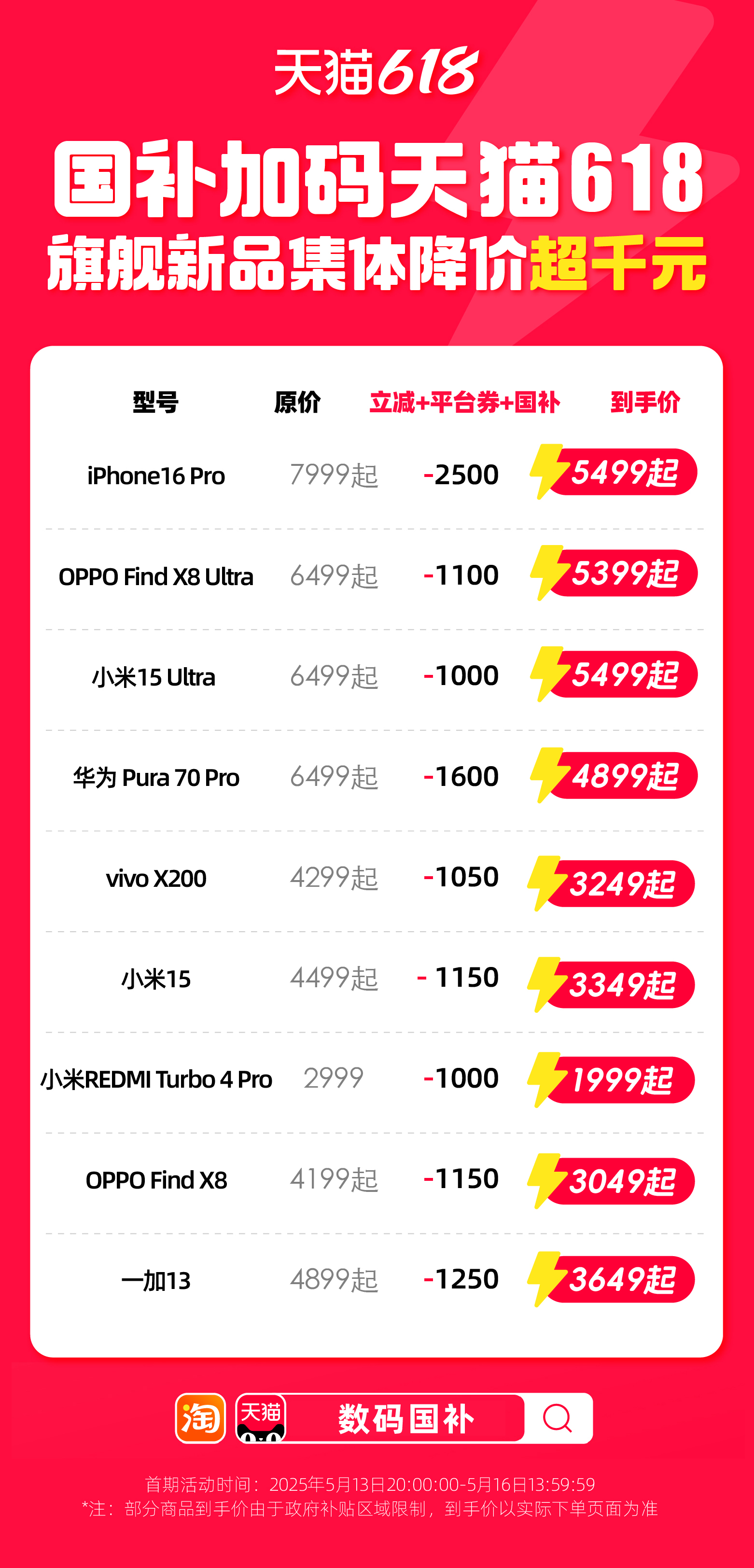 國補加碼的618,手機旗艦新品全線大降價。蘋果直降2000元,iPhone16Pro首次納入國補,優(yōu)惠2500元;華為、小米、OPPO等品牌紛紛加入戰(zhàn)局,6000元以上旗艦機型均降價至國補范圍內(nèi),疊加618平臺券,旗艦機型均便宜1000元以上。