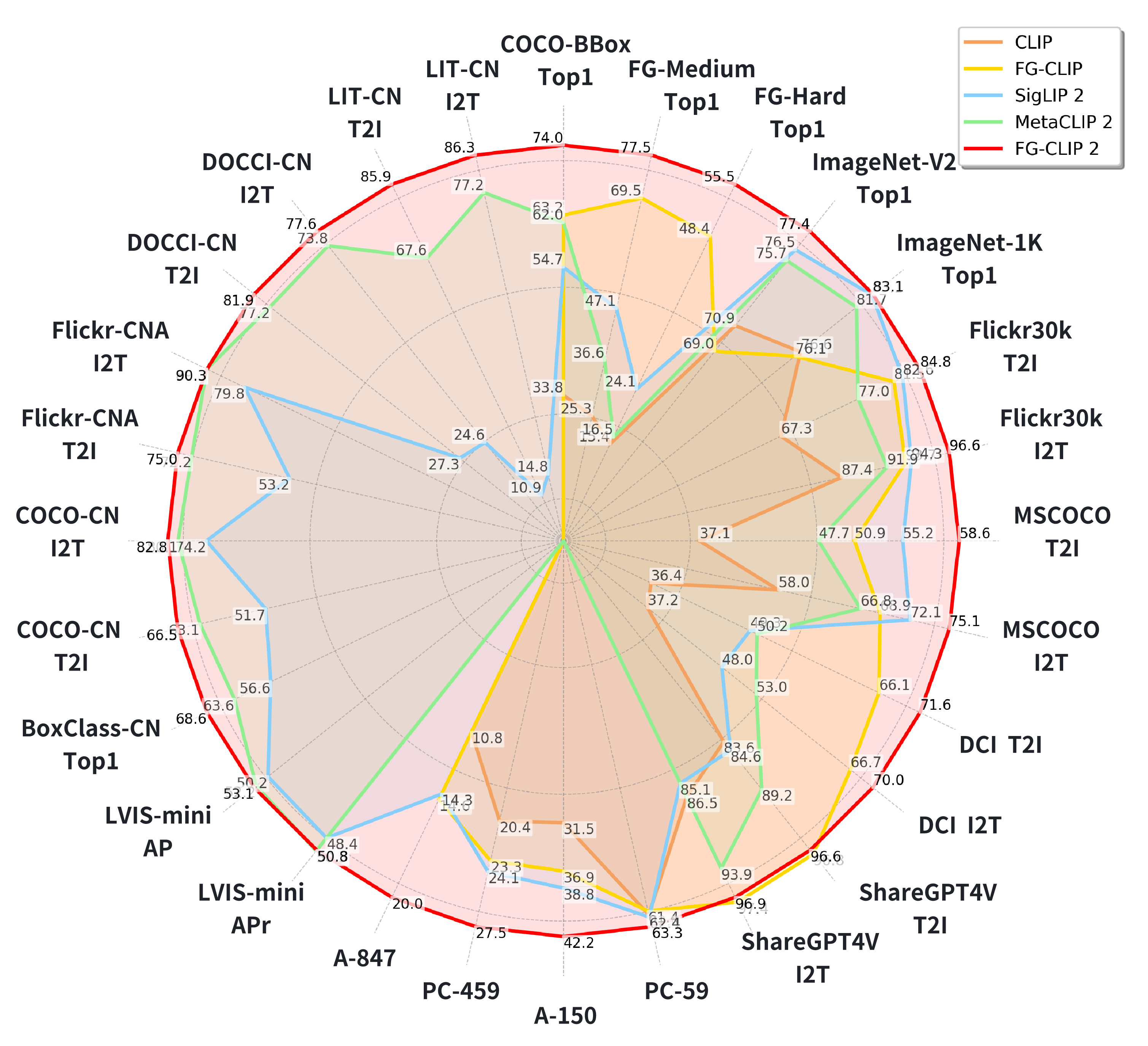如果說(shuō)OpenAI在2021年提出的CLIP模型,為AI配上了一副能“看清世界”的普通眼鏡;那么360的FG-CLIP2,則是為AI裝備了一臺(tái)“高精度光學(xué)顯微鏡”,使其能夠“洞察入微”。它成功攻克了CLIP模型長(zhǎng)期存在的“細(xì)粒度識(shí)別”痛點(diǎn)。