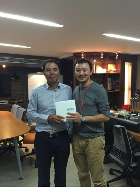 知乎聯(lián)合創(chuàng)始人黃繼新向張小龍贈(zèng)送知乎出版的第一本實(shí)體書(企業(yè)供圖)