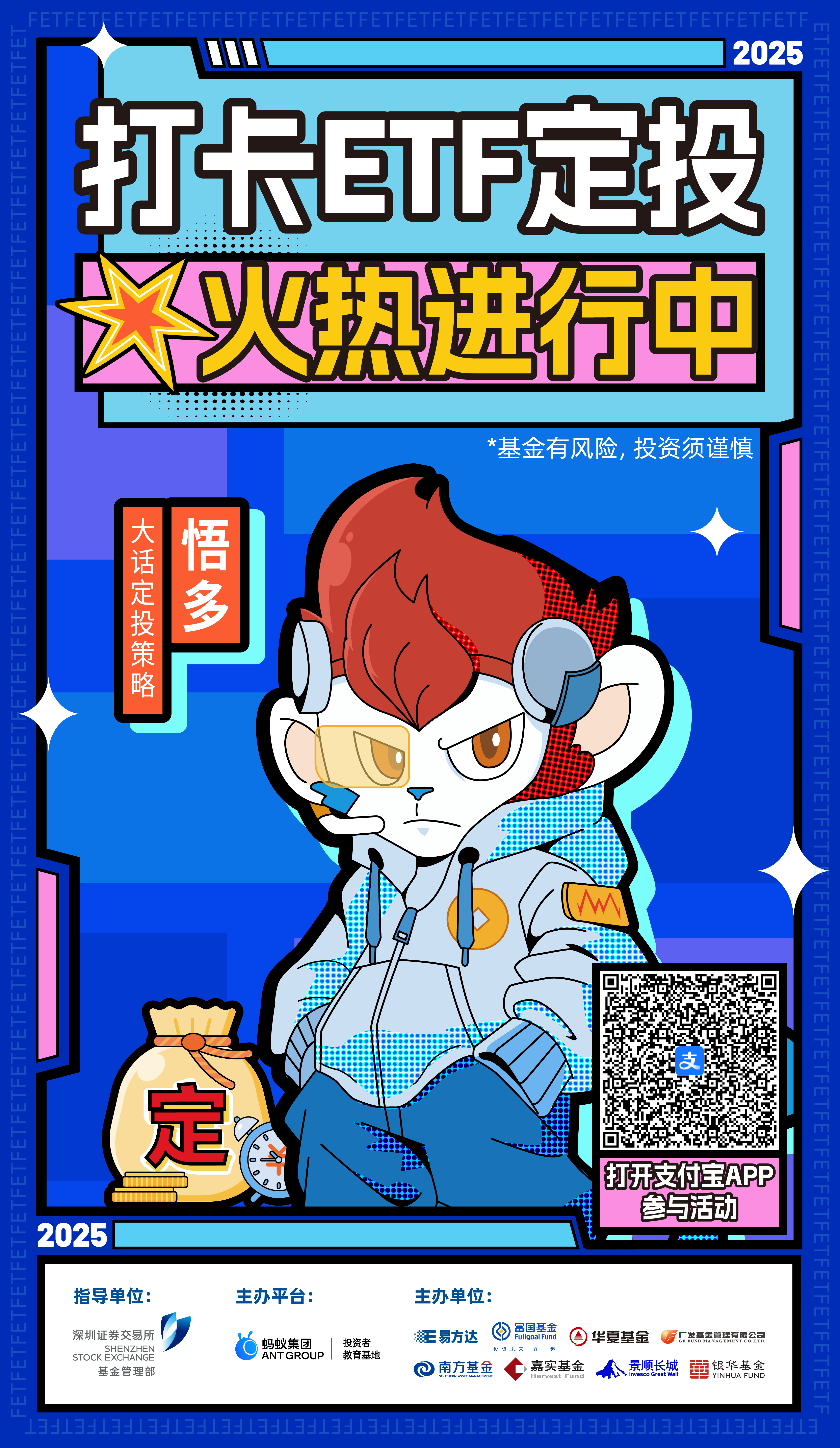 國(guó)家高度重視中長(zhǎng)期資金入市工作,先后出臺(tái)多項(xiàng)指導(dǎo)意見(jiàn)加快投資端建設(shè)、大力推動(dòng)中長(zhǎng)期資金入市。ETF定投策略具有長(zhǎng)期性、穩(wěn)定性等特征,天然契合中長(zhǎng)期資金投資入市機(jī)制。為了讓廣大投資者更好地認(rèn)識(shí)和了解ETF及ETF定投策略,深圳證券交易所基金管理部聯(lián)合螞蟻投教基地推出“打卡定投”投資者教育活動(dòng),讓大家在輕松有趣的氛圍中,探索ETF的神奇世界。