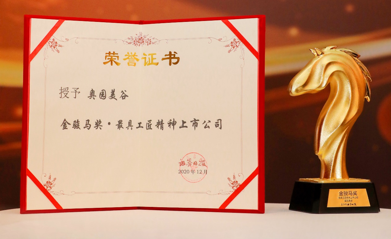12月11日,由《證券日?qǐng)?bào)》社主辦的“第四屆新時(shí)代資本論壇”在北京隆重召開,并揭曉“2020年度中國證券市場金駿馬獎(jiǎng)”,奧園美谷憑借不斷提升的公司治理水平、持續(xù)改善的經(jīng)營管理情況、清晰明確的未來發(fā)展戰(zhàn)略,榮膺“金駿馬獎(jiǎng)·最具工匠精神上市公司”。