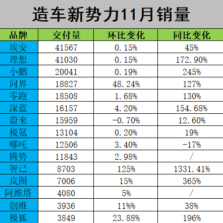 11月造車新勢力銷量排行榜中有幾個后勁十足的汽車品牌值得關注。