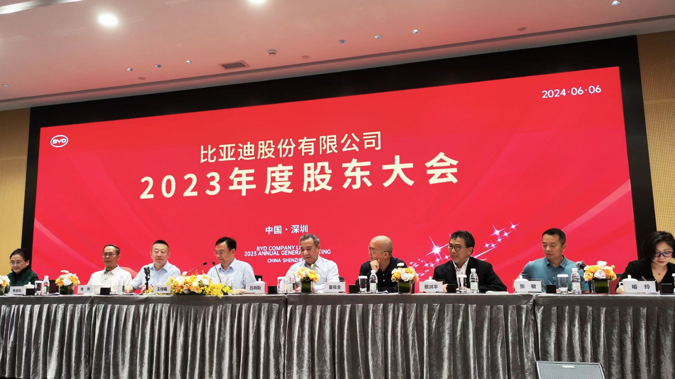 6月6日,比亞迪在深圳坪山召開2023年度股東大會(huì),比亞迪董事長(zhǎng)兼總裁王傳福等出席。