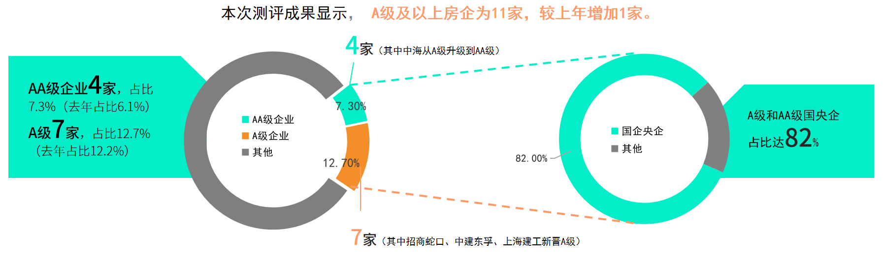 其中,11家ESG評(píng)級(jí)A級(jí)及以上的房企中,龍湖集團(tuán)和綠城中國是民營房企,其他9家是央國企,或有國資背景的混合所有制企業(yè),民營企業(yè)占比僅為18.2%。