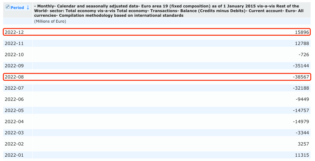 歐元區(qū)經(jīng)常賬戶數(shù)據(jù) 來源:歐洲央行官網(wǎng)
