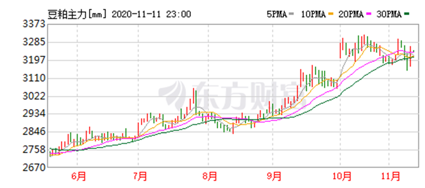 國內(nèi)豆粕主力合約一路走高(供圖:東方財(cái)富)