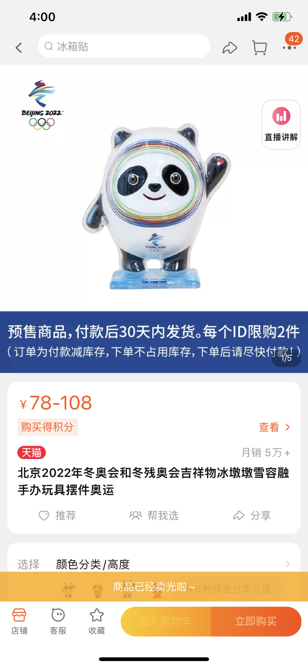 2月7日下午4點,北京冬奧會官方旗艦店再次開售“冰墩墩”擺件,《證券日報》記者試圖搶購,未及付款,產(chǎn)品就被一搶而空。在王府井大街上,“冰墩墩”擁躉們排起了長龍。“不止冰墩墩,好多冬奧紀念品都沒貨了。”現(xiàn)場工作人員告訴《證券日報》記者。