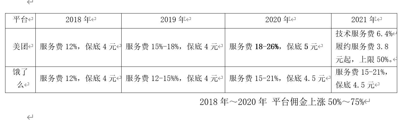 事實(shí)上,面對餐飲行業(yè)出現(xiàn)的負(fù)增長及從業(yè)人員的呼吁,2021年,美團(tuán)、餓了么等平臺開始進(jìn)行費(fèi)率改革。