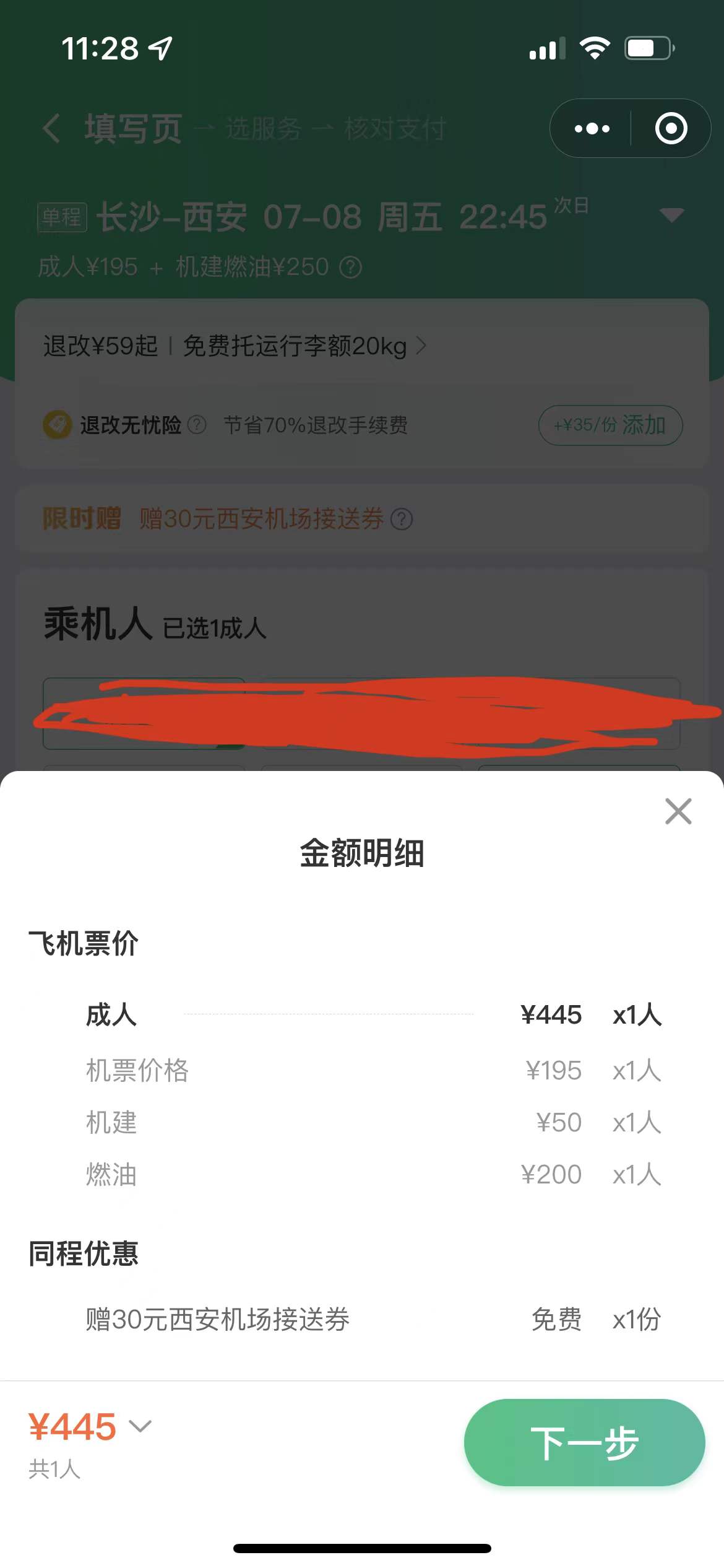7月5日,記者在同程旅行搜索票價發(fā)現(xiàn),7月6日廣州出發(fā)前往貴陽、7月7日貴陽出發(fā)前往廣州、7月8日長沙出發(fā)前往西安的機票裸價均未超過200元,而燃油附加費和機場建設(shè)費價格已經(jīng)達到250元。